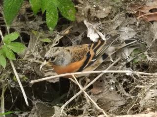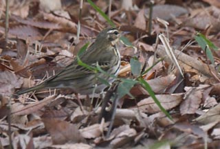 さらにその奥の地上ではビンズイが2羽地上で餌を探して。胸の縞模様が鮮やかでした。ここに突然ウグイスが乱入。入り乱れてと思ったら、フェンスの向こうの民家の庭へと通り過ぎていきました。
