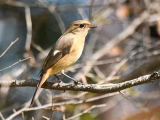 急に寒くなってきて一気に晩秋の様相になってきました。こうなると、冬鳥の飛来に期待。月曜日、例のアカゲラを見たところにいると、近くでジョウビタキのメスがいたと教えてもらい探しに。この時は見つからなかったのですが、三宝寺池を一回りして帰りにもう一度立ち寄ると、ヒッヒッという声がして、枝の上にいるのが見えました(写真)。オスに比べると地味ですが、目が大きくてかわいい。まさに冬の使者。来年の春まで楽しませてくれるでしょう。