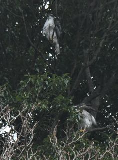 野鳥誘致林まで来ると突然オオタカの声が。高いモミノキの上から飛び立って西側へ。体の大きさからオスの成鳥の様子。