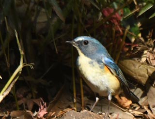 体調を崩してしまい、しばらくぶりの石神井公園でした。まず、記念庭園でルリビタキを探します。人が集まっているところでしばらく待っていると、笹原の間に姿を見せてくれました。頭から背中が青い♂の成鳥(写真)。ルリビタキは3年目にならないと全体に青くならないので、貴重品。ルリビタキ!という感じですね。